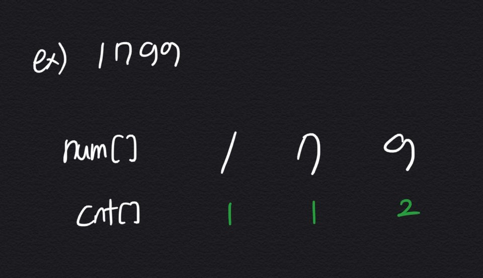// 각 숫자의 개수를 저장한 cnt배열 만들기