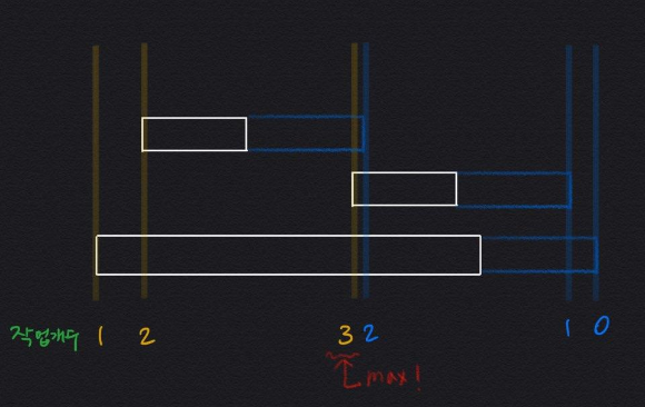 그런데 작업의 개수가 변하는 시점은 시작시각 / 끝시각 뿐이다.