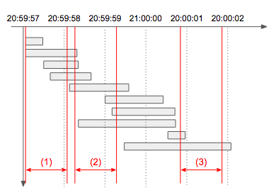 입력: [ 2016-09-15 20:59:57.421 0.351s, 2016-09-15 20:59:58.233 1.181s, 2016-09-15 20:59:58.299 0.8s, 2016-09-15 20:59:58.688 1.041s, 2016-09-15 20:59:59.591 1.412s, 2016-09-15 21:00:00.464 1.466s, 2016-09-15 21:00:00.741 1.581s, 2016-09-15 21:00:00.748
