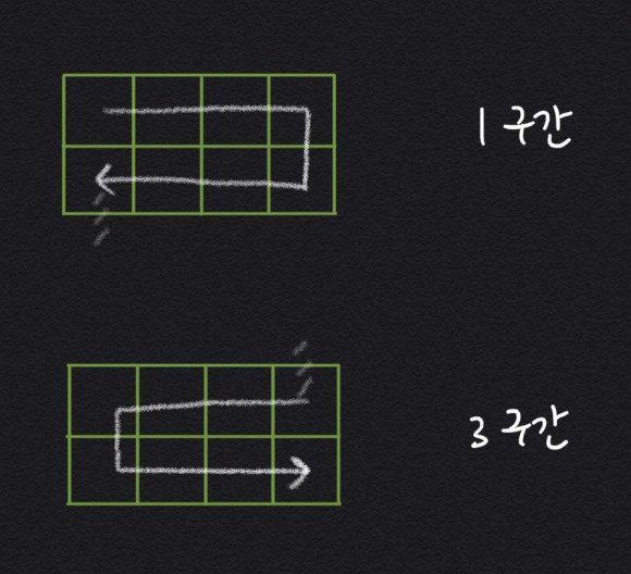 열을 2줄씩 자른 것이 한 단위가 되고
