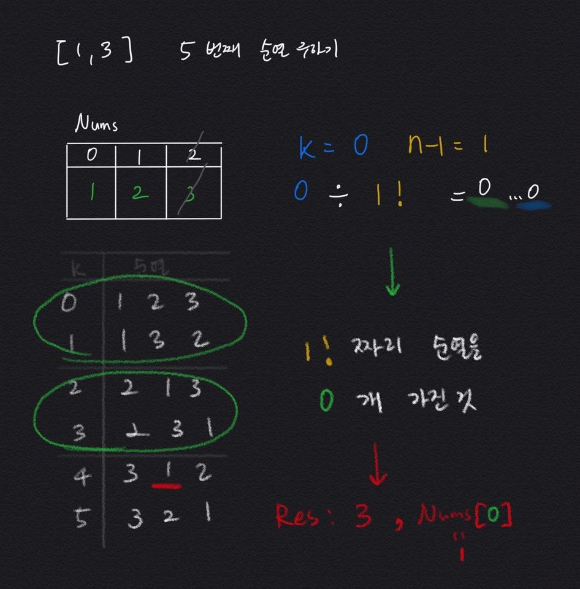 이 문제는 특정 번째의 순열을 주고 다음 순열을 구하라는 것이 아니라,