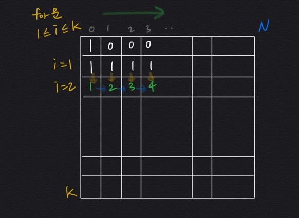 D[K - 1][N]은 1회차 전의 D[K][N]라고 생각할 수 있지 않을까?!