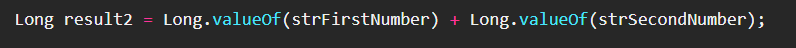 Long result = Long.parseLong(strFirstNumber) + Long.parseLong(strSecondNumber);
